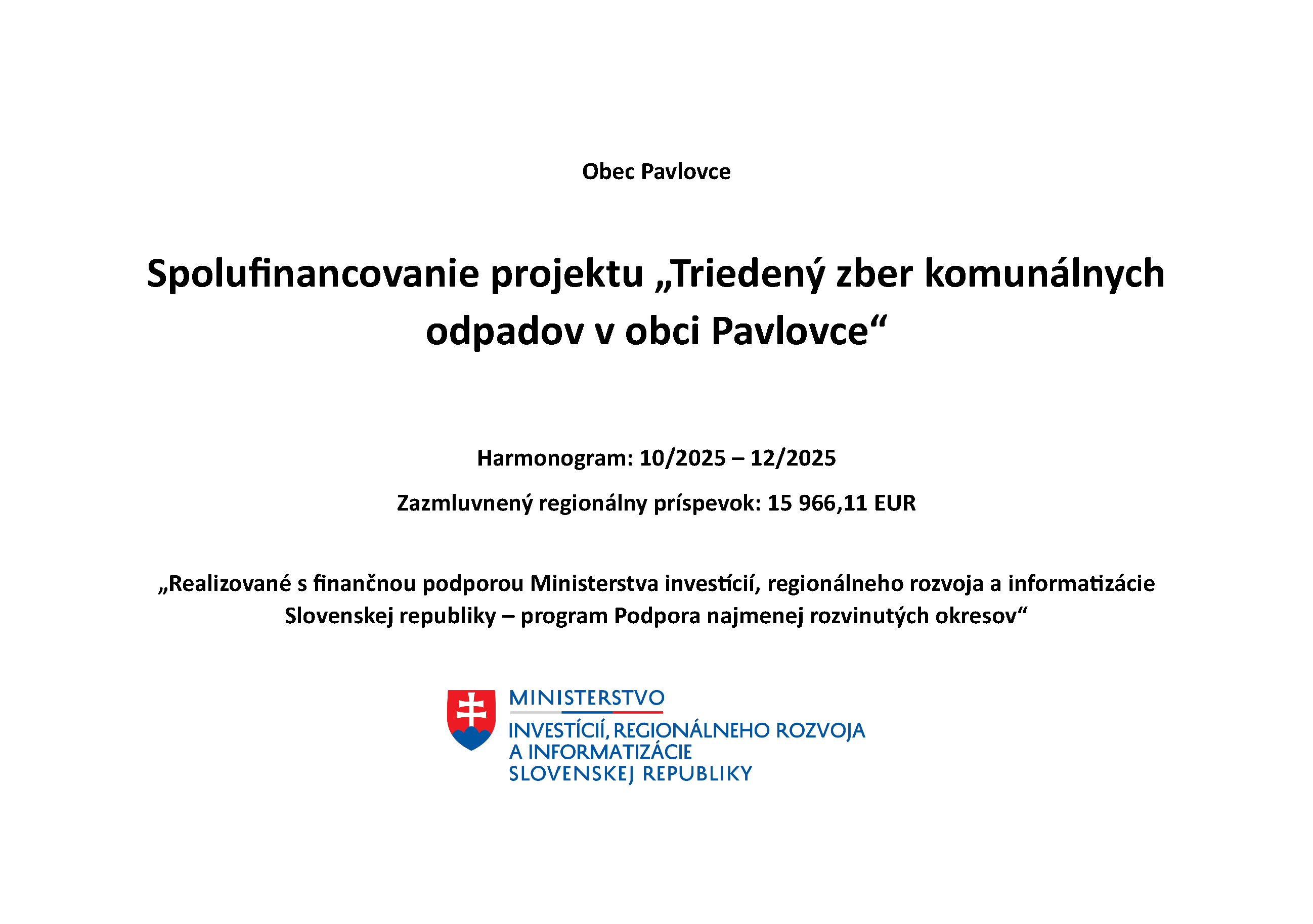Obec Pavlovce v zastúpení starostom obce, v zmysle ustanovení § 9 zákona 321/2025 Z. z. o školskej...